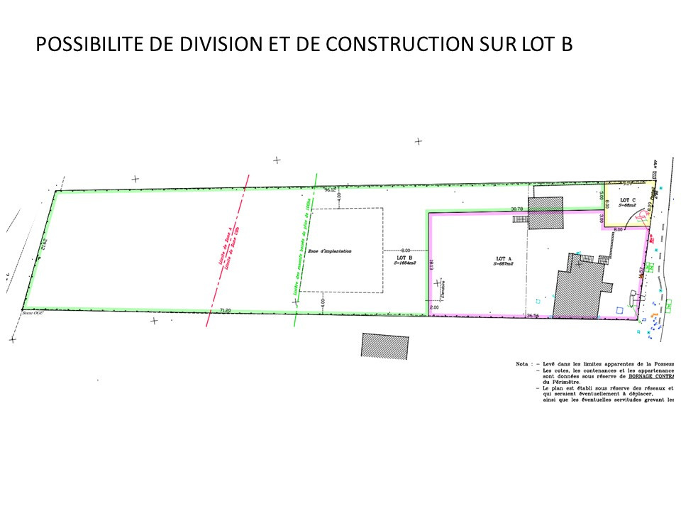 Possibilité de construction d'une autre habitation sur le lot arrière et de division de la maison existante en plusieurs logements.