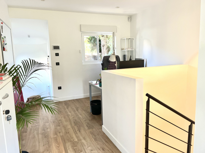 Ce pavillon de 84,3 m2 habitables sur deux étages a été récemment rénové. Actuellement utilisé comme bureaux d'entreprise, il se compose de plusieurs entrées indépendantes, de 4 pièces principales (chambres, séjour, salon), d'une cuisine équipée, d'une loggia et de 2 wc séparés. TERRASSE et DOUBLE GARAGE.